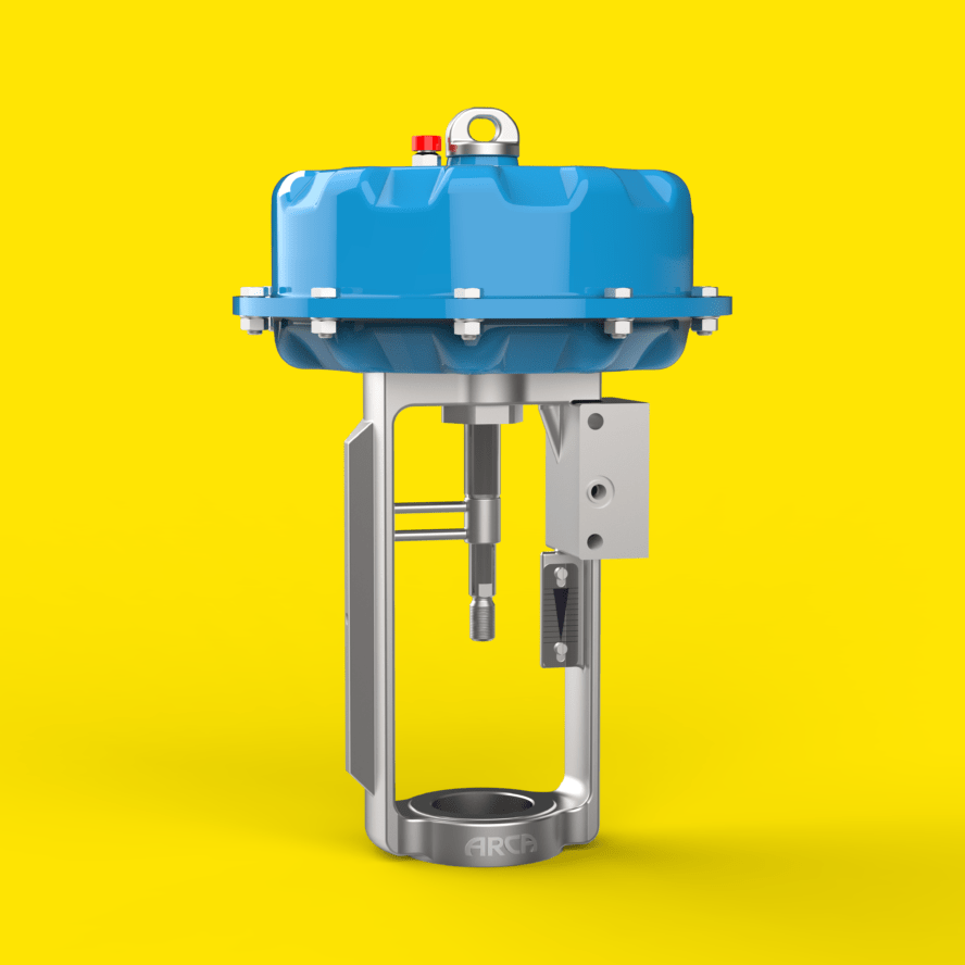 You always have the right solution with our pneumatic, electric and hydraulic valve actuators with lifting or rotary actuator. From low to very high actuating forces or torques. All ARCA valve actuators have one thing in common: the particularly low life cycle costs. Under the name ARCADRIVE, we offer pneumatic diaphragm actuators for universal use with a sturdy rolling diaphragm and a solid and simple structure. These ensure hysteresis-free control over the entire control range. Our pneumatic valve actuators offer both directions of action. Opening or closing by spring force or control air can be reversed at any time. Thanks to the integrated actuation spring, the pneumatic actuator always adopts a defined end position – with very short actuating times. Our pneumatic actuators thus play a key role in plant safety. In addition, there are electric actuators in our range. Their actuating and control forces are transferred to the valve using geared motors, so that they are permanently available without delay. Suitable ratios guarantee that even extremely high actuating forces are transferred safely and reliably. These valve actuators are designed with manual adjustment as standard. The cut-off is realised by adjustable torque or travel limit switches. A standardised connection interface allows use in all common applications. The hydraulic actuators round off our range of actuators. They are characterised by high actuating forces and actuation speeds. Due to the double piping for inlet and return, hydraulic actuators are only specified if there are corresponding technical necessities.