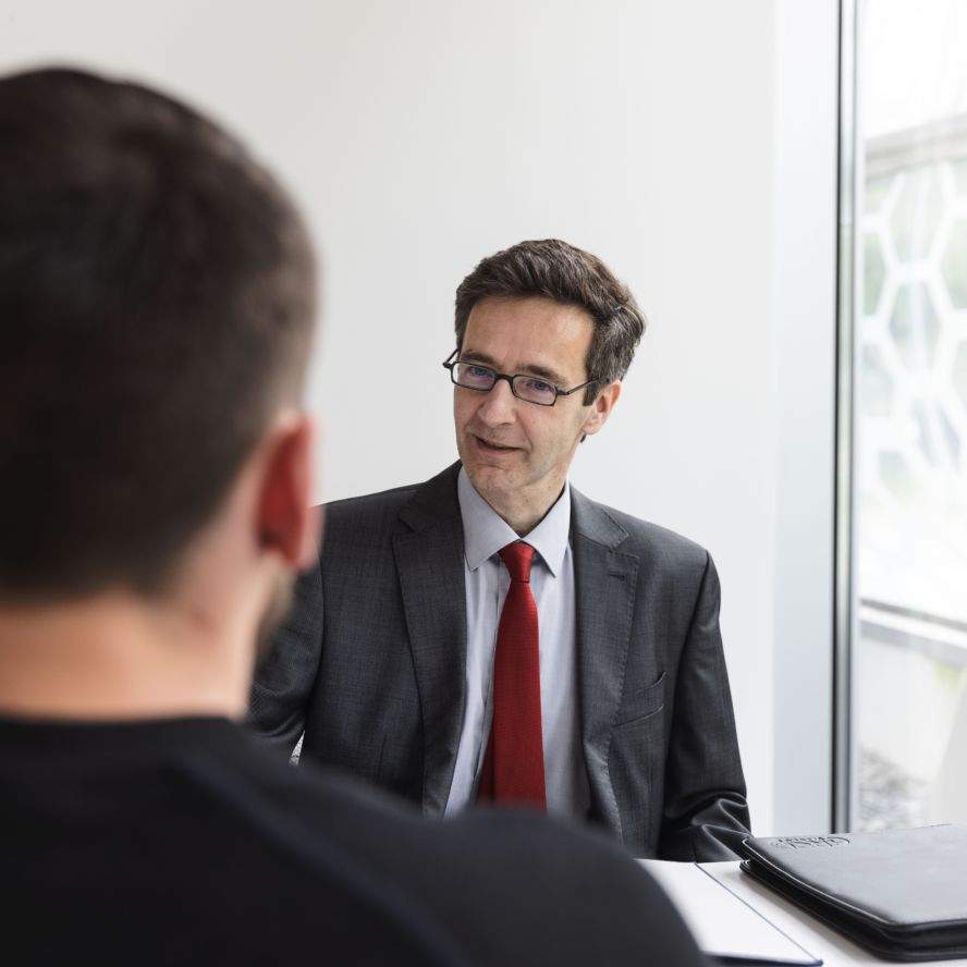 Zwei unserer Mitarbeiter werden das Gespräch mit Ihnen führen. Dabei handelt es sich meist um Ihren zukünftigen Vorgesetzten und jemanden aus dem gleichen Fachbereich, der zu Ihren potenziellen Kollegen gehört. Nach der gegenseitigen Vorstellung erhalten Sie in entspannter Atmosphäre Gelegenheit dazu, von sich zu erzählen und Ihre Motivation für den Job darzulegen.